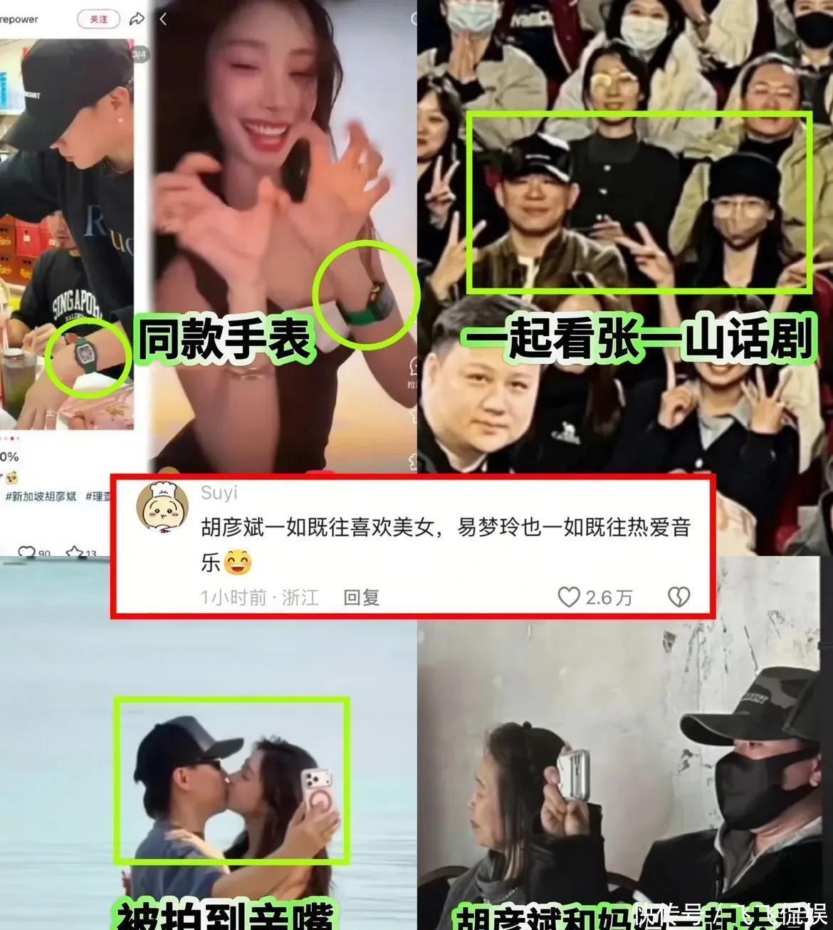 前天,易梦玲被拍到跟胡彦斌在海边的亲吻照,两人的恋情宣布曝光。其实在之前,易梦玲跟胡彦斌就被查出交往的蛛丝马迹。比如胡彦斌的理查德手表戴到了易梦玲的手腕上,再比如,胡彦斌跟妈妈一起去看易梦玲参演的话剧。